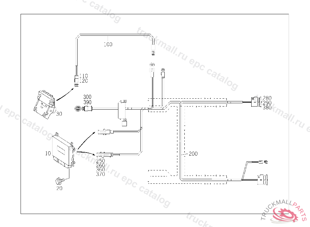WIRING HARNESS PARKTRONIC SYSTEM (PTS), FLOOR ASSY., A 55589720030630804 E 02000020070101804 A 97499920070630 E 06000020080801809