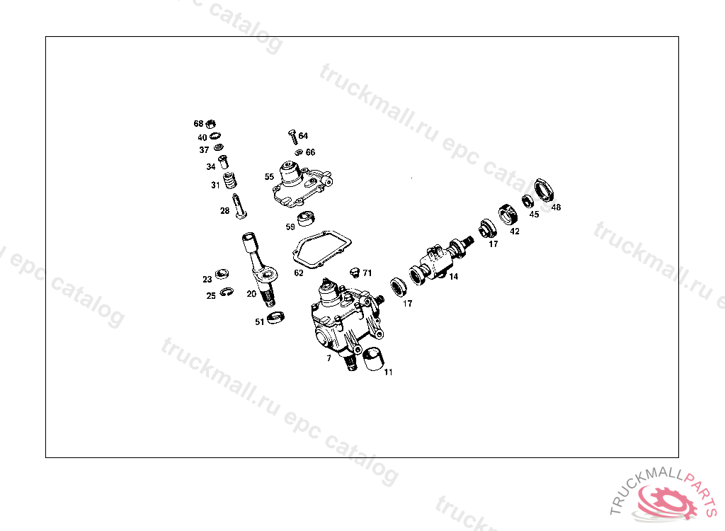 STEERING WORM WITH STEERING NUT, 20/60 UP TO CHASSIS 022038,FROM CHASSIS 022039-252864 SEE SPARE PARTS LIST 760.202,FROM CHASSIS 252865 SEE SPARE PARTS LIST 760.204