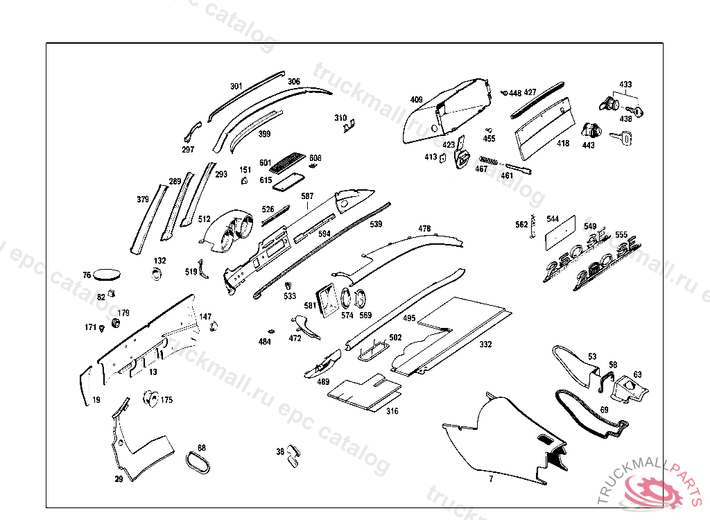PANELLING INSIDE RIGHT, UP TO CHASSIS 002675 ALSO ORDER:2X111 688 85 39