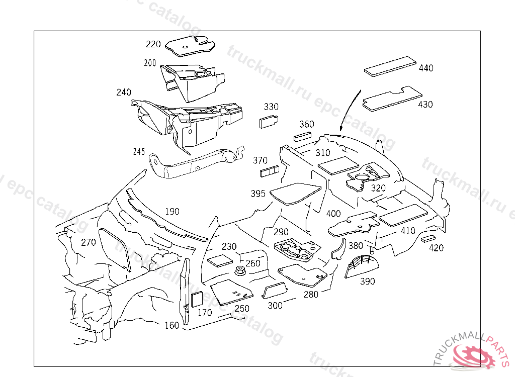 INSULATION TRANSMISSION TUNNEL,TOP, A 698508 X 012426 EXEPT FOR VEHICULES WITH CODE 808 ALSO INSTALLED IN VEHICLE TO A 698507, X 012425 WITH CODE 809
