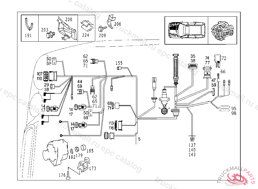 CABLE HARNESS ENGINE CABLE HARNESS,BODY MOUNTED, A 698507 X 012425 EXCEPT CODE 809 ALSO INSTALLED IN VEHICLE FROM A 698508, X 012426 WITH CODE 808