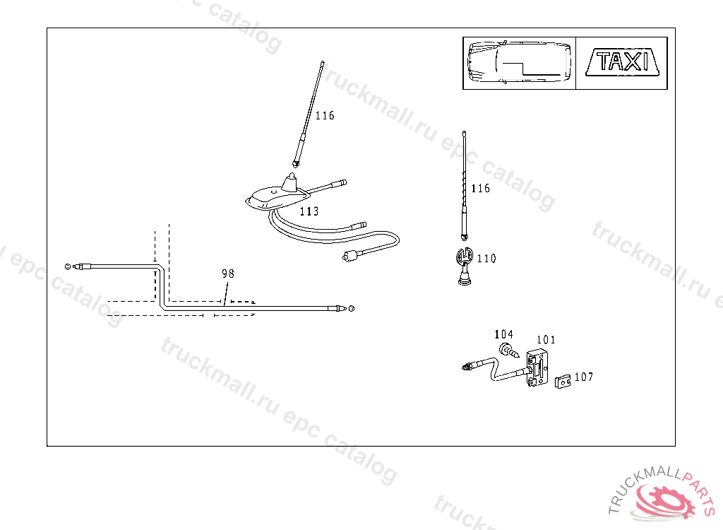 ANTENNA ROOF MOUNTED ANTENNA D/E/GPS/TAXIFUNK, A 698508 X 012426 EXEPT FOR VEHICULES WITH CODE 808 ALSO INSTALLED IN VEHICLE TO A 698507, X 012425 WITH CODE 809