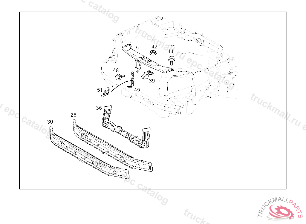 SUPPORT RADIATOR SUPPORT, ORDER ADDITIONALLY FOR USE WITH HIGH-MOUNTED RADIATOR: 1 X 210 620 00 72 FRONT CENTRAL STIFFENING 2 X 210 628 08 31 ADAPTER, RADIATOR MOUNTING, USED WITH HIGH MOUNTED RADIATOR 4 X 201 990 02 50 NUT ORDER ADDITIONALLY FOR USE WITH ELECTRONIC STABILITY PROGRAMM (ESP) CODE 472 1 X 210 620 76 14