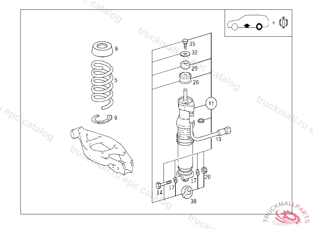HYDROPN. SPRING LEG. HYDROPNEUMATIC SPRING LEG RANGE OF DELIVERY, ONLY REPLACEABLE BY PAIRS, Replaced By: A2103201713, +002A2109900099