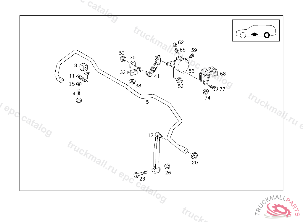 ROD FROM TORSION BAR TO SELF-LEVELLING UNIT