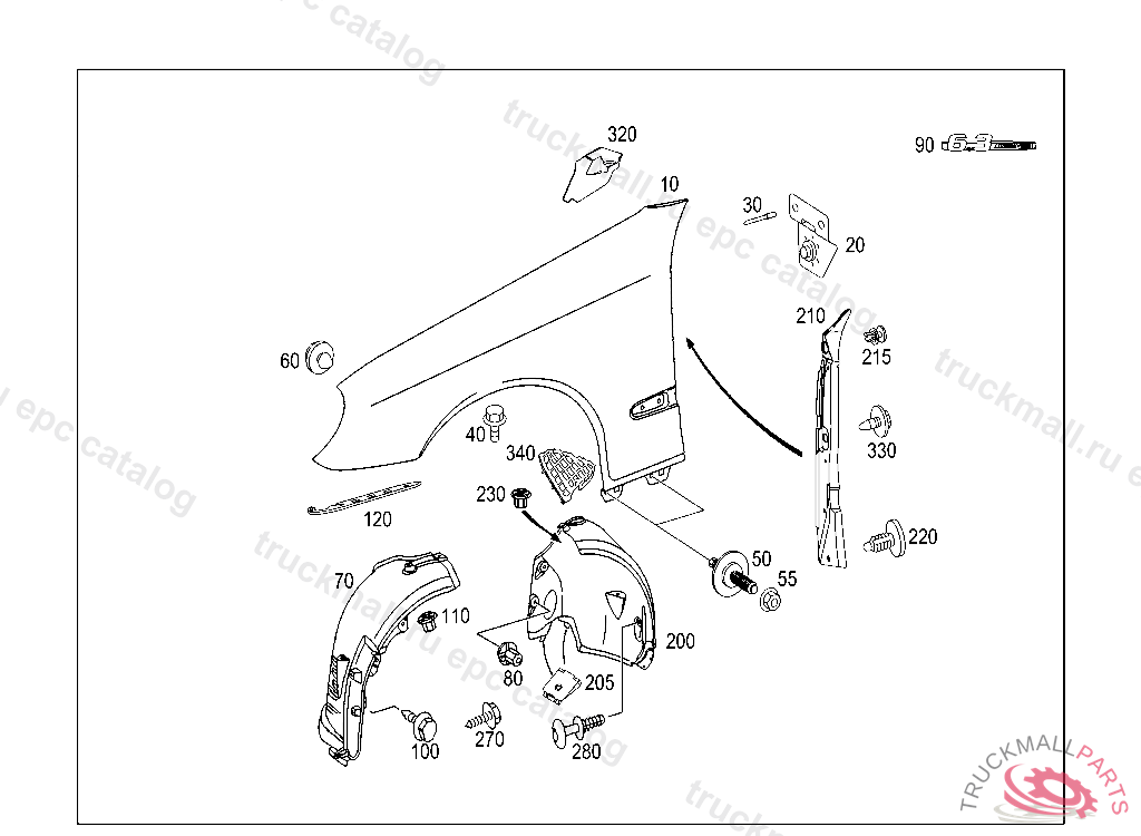 FRONT FENDER RIGHT, A 74667620050113 A 73475220041231 L 00000020041231 X 18076220050118, Replaced By: A2118801418, +001A2116202014, +002A0039903597
