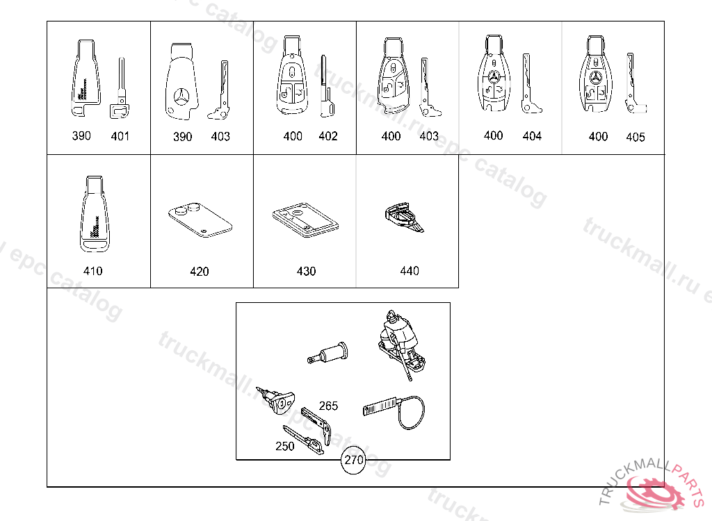MASTER KEY (EMERGENCY KEY), WHEN ORDERING, PLEASE DO NOT FAIL TO FILL OUT THE FORM COMPLETELY, AND TO PUT IT ON FILE. "ORDER FOR SPARE KEYS/LOCKING PARTS" IN CASE OF CRIMINAL INVESTIGATIONS, YOU SHOULD AT ANY TIME BE ABLE TO GIVE DOCUMENTARY EVIDENCE. DRIVE AUTHORIZATION SYSTEM 3 (FBS 3) IMPORTANT! CHECK CURRENT STATUS OF ELECTRONIC KEY FROM CUSTOMER BEFORE ORDERING A 394036 X 000001 EXCEPT CODE 807 ALSO INSTALLED IN VEHICLE TO A 394035, X 005092 WITH CODE 808 THEFT-RELEVANT PART