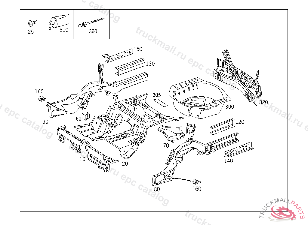 SPARE WHEEL WELL REAR END FLOOR, INCLUDE IN ORDER ON VEHICLES WITHOUT CODE 479 1 X A 215 682 09 41, 1 X A 215 682 10 41, 6 X A 123 990 02 92