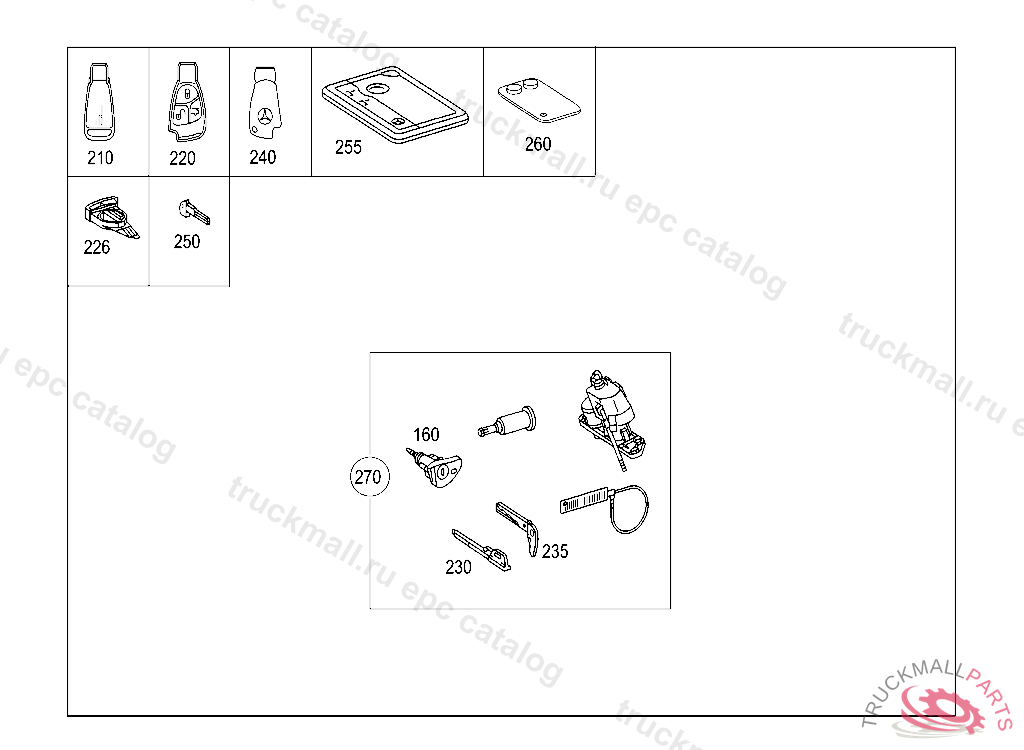 KEY ELECTRONIC, PROGRAMMED, THEFT-RELEVANT PART IMPORTANT: WHEN ORDERING, CITE ADDITIONAL KEY ES-2: 0041. CAUTION! WHEN ORDERING AUXILIARY KEY ES-2 MUST BE QUOTED READ OUT DATA FROM VEHICLE. WHEN ORDERING, ENSURE FORM IS COMPLETED FULLY AND KEPT ON FILE."SPARE-KEY/LOCKING LUG PART ORDERS". IN THE EVENT OF CRIMINAL INVESTIGATION DOCUMENTARY EVIDENCE MUST BE FURNISHED AT ANYGIVEN TIME. PLEASE ALSO ORDER MANUAL KEY A 203 766 50 06, SPECIFYING THE VEHICLE IDENTIFICATION NUMBER, Replaced By: A2117667706