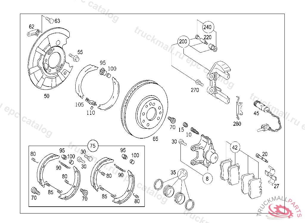 BRAKE SHOE RANGE OF DELIVERY, WHEN SELLING BRAKE LININGS TO END USERS/DESK BUYERS THE A 203 005 25 99 IS TO BE HANDED OVER FREE OF CHARGE