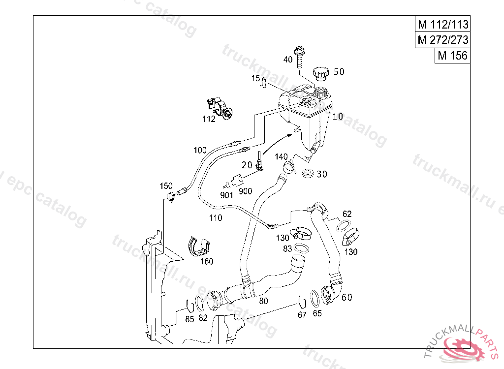 VENTILATION LINE COMPENSATING RESERVOIR TO COOLANT HOSE TOP