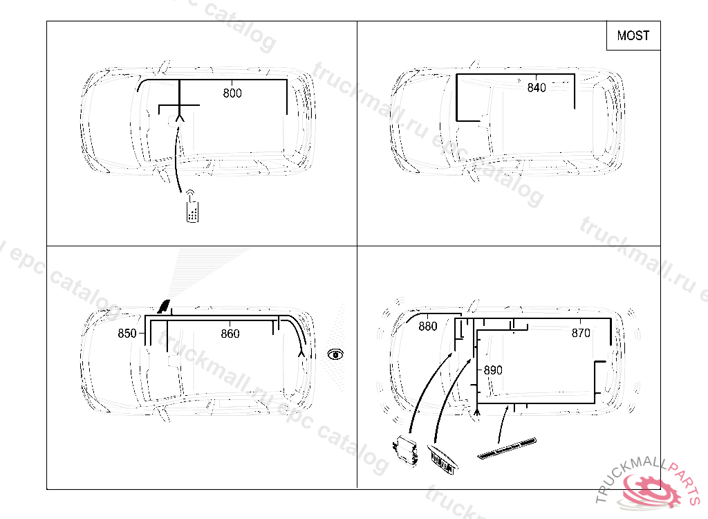 ELECTRICAL WIRING HARNESS OPERATING UNIT SOUND TV UNIVERSAL COMMUNICATIONS INTERFACE MOST