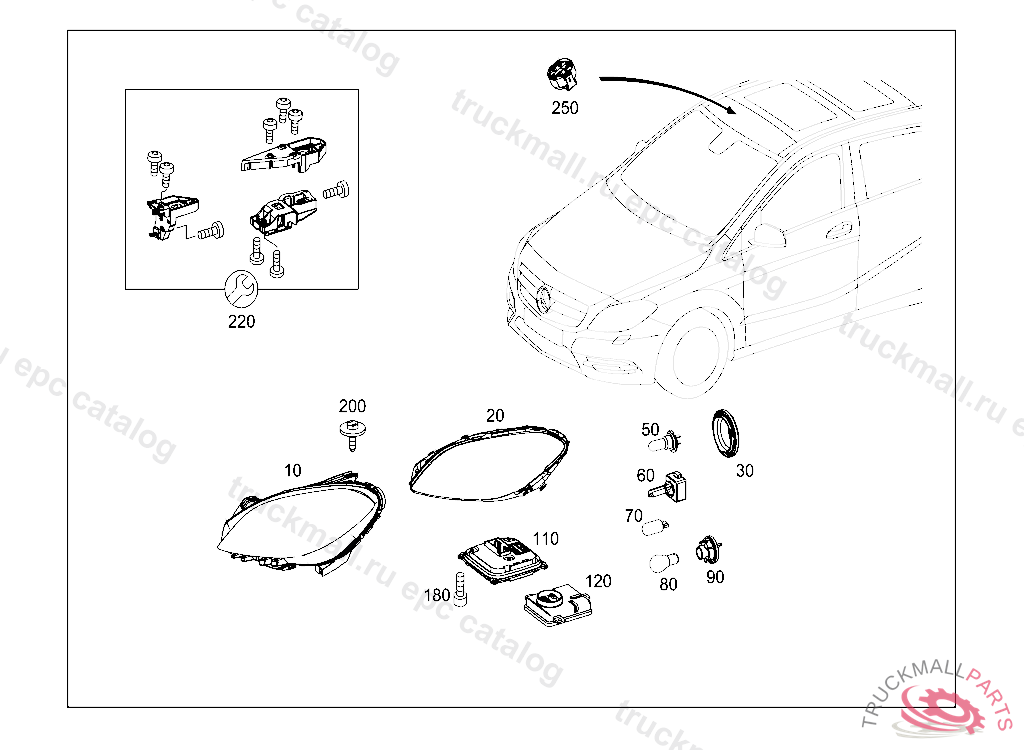 HEADLAMP UNIT LEFT, FIRST EXHAUST STOCK OF OLD PARTS UP TO IDENT NO. J 01661820120131 N 00117320120928, Replaced By: A2468200739