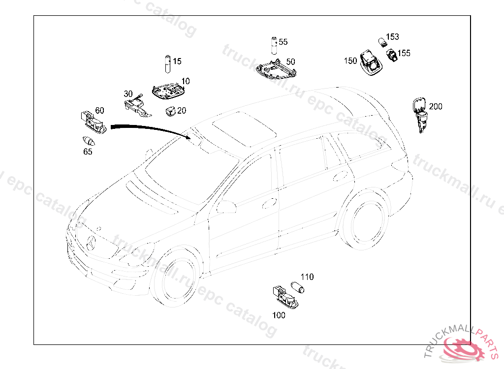 INTERIOR LAMP ROOF MOUNTED OPERATING UNIT, A 01040520051111 ONLY VALID WITH EQUIPMENT: 001A/008A/101A/108A/201A/208A/501A/508A/901A/908A