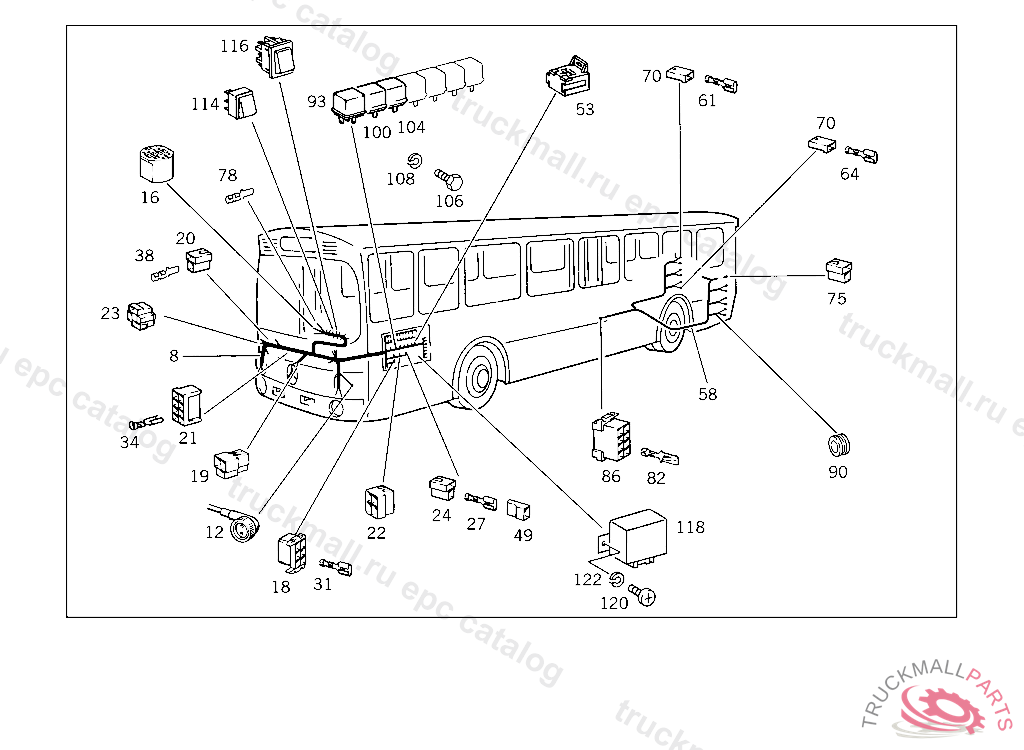 PIN BUSHING HOUSING. PLUG HOUSING FROM CHASSIS/CAB CONNECTION POINT TO TACHOGRAPH