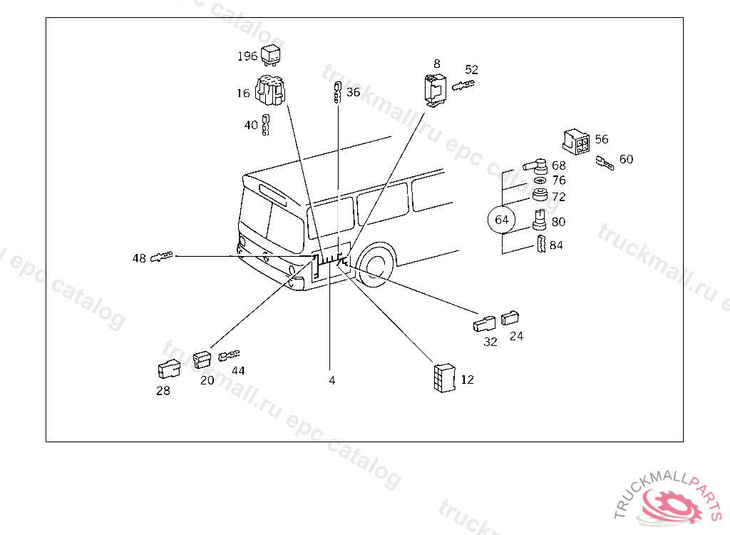 PIN BUSHING HOUSING. PLUG HOUSING FROM CHASSIS/CAB CONNECTION POINT TO TACHOGRAPH