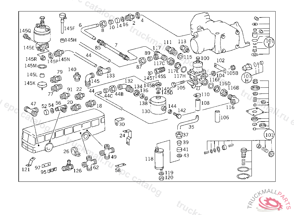 FITTING AIR RESERVOIR DRAIN, UP TO CHASSIS 007915 EXCEPT FOR CHASSIS 007869,007877,007881,007883-007885,007887-007890,007895-007901,007906-007911