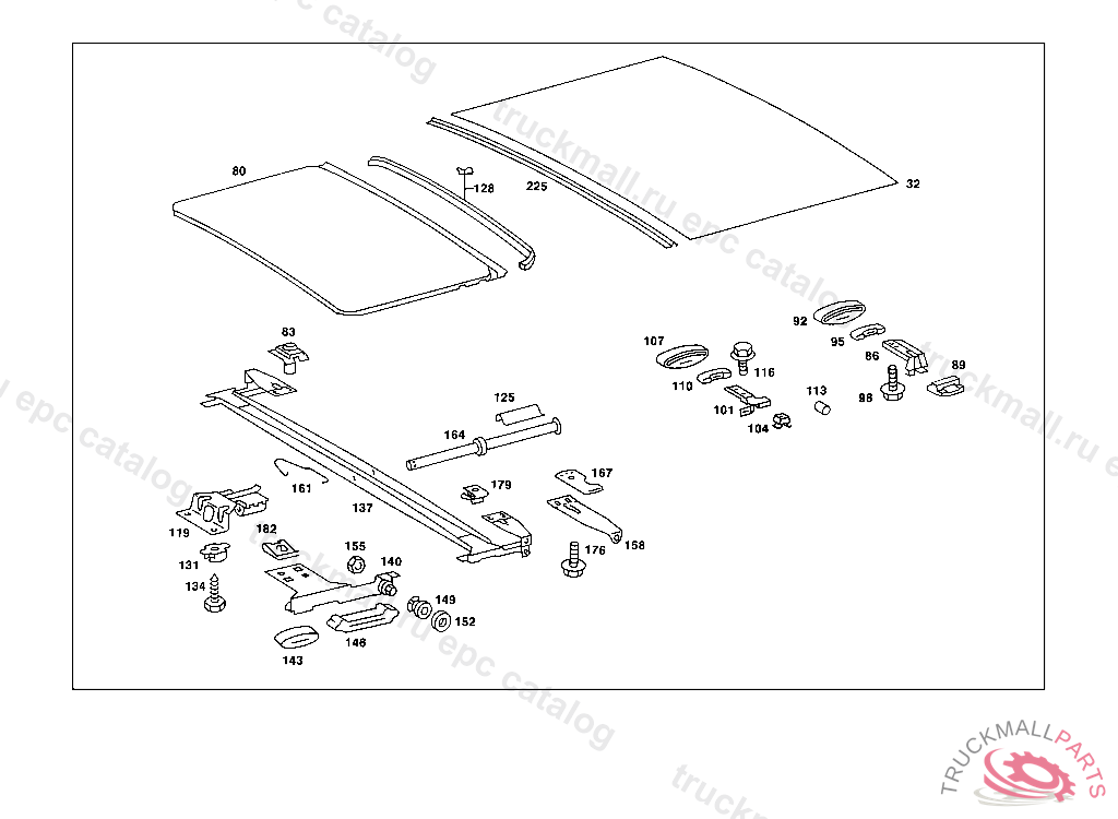 SLIDING ROOF PLATE , FIRST EXHAUST STOCK OF OLD PARTS UP TO IDENT NO. 033 103026 123 338068 130 208108 133 010185 223 105768 023 UNTIL PRODUCTION STOP, Replaced By: A1237801321, +002A0009905133