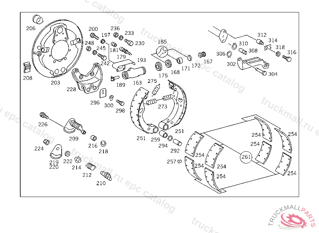 BRAKE SHOE LESS LINING,FB330168 WITH TWO-SPEED REAR AXLE USED WITH HYDRAULIC BRAKE,345.000-008,021,024,025,033 UP TO IDENT NO. FB588185 UP TO CHASSIS FB588185,FROM CHASSIS FB588186,SEE SPARE PARTS LIST 743.0