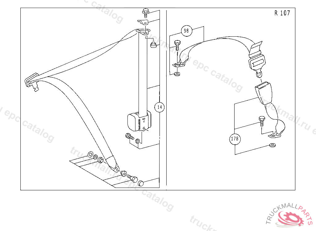 SAFETY BELT LESS LOCK, RIGHT FRONT SEAT