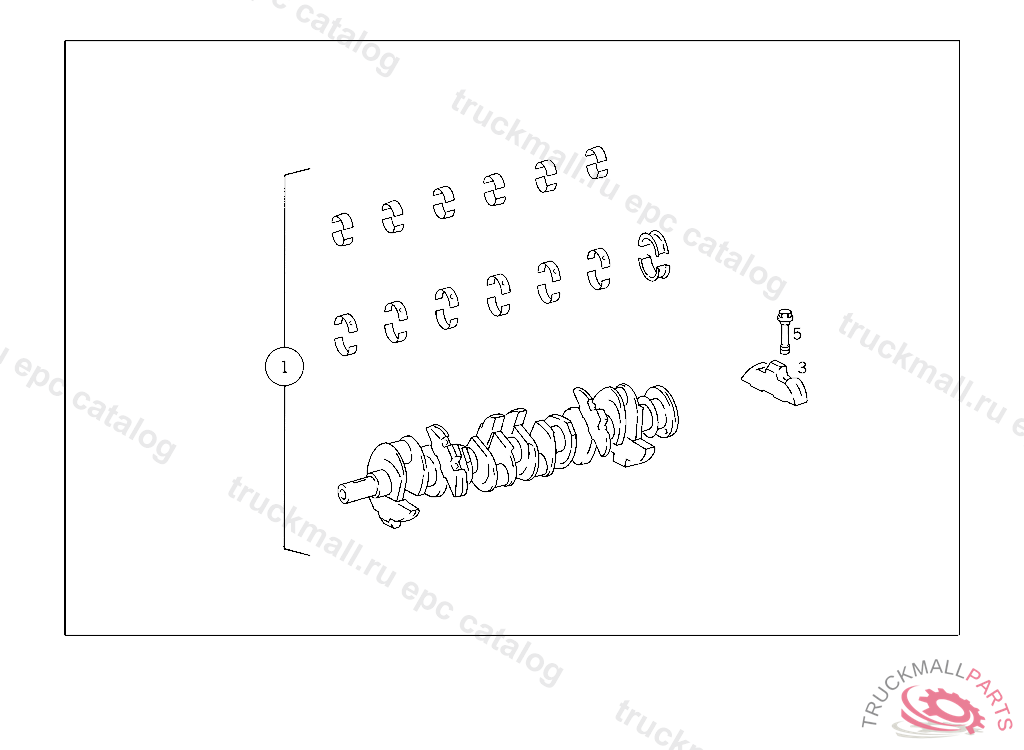 CRANKSHAFT WITH CRANKSHAFT BEARING SHELLS AND CONNECTING ROD BEARING SHELLS