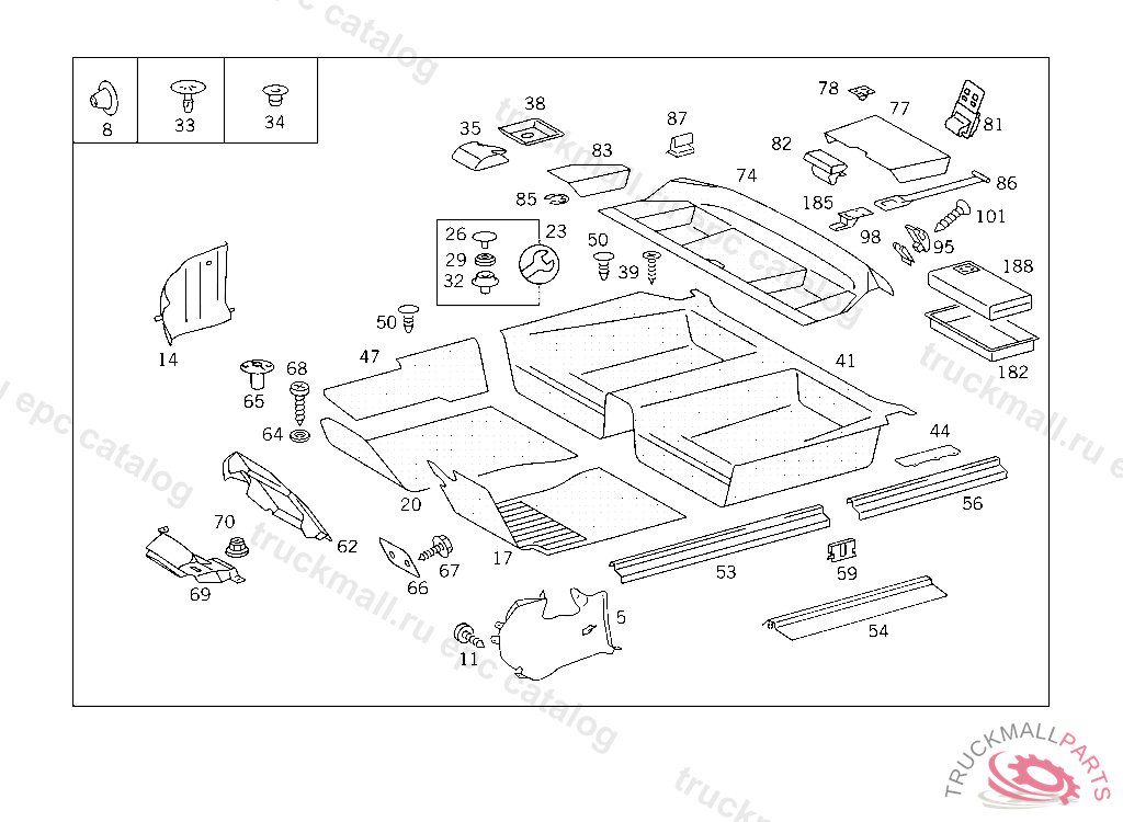 LINING REAR FLOOR VELOURS,NO.7145I NO.5088I NO.8E42I NO.8423I NO.8424I NO.6129I NO.3117I NO.7144I IIIIIIIIF 249984