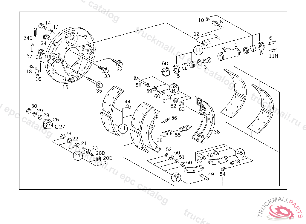 REPAIR KIT BRAKE SHOE SHACKLE, UP TO CHASSIS 910369 ALSO INSTALLED ON 500001-501455,FROM CHASSIS 910370 AND 501456-599999 SEE SPARE PARTS LIST 103