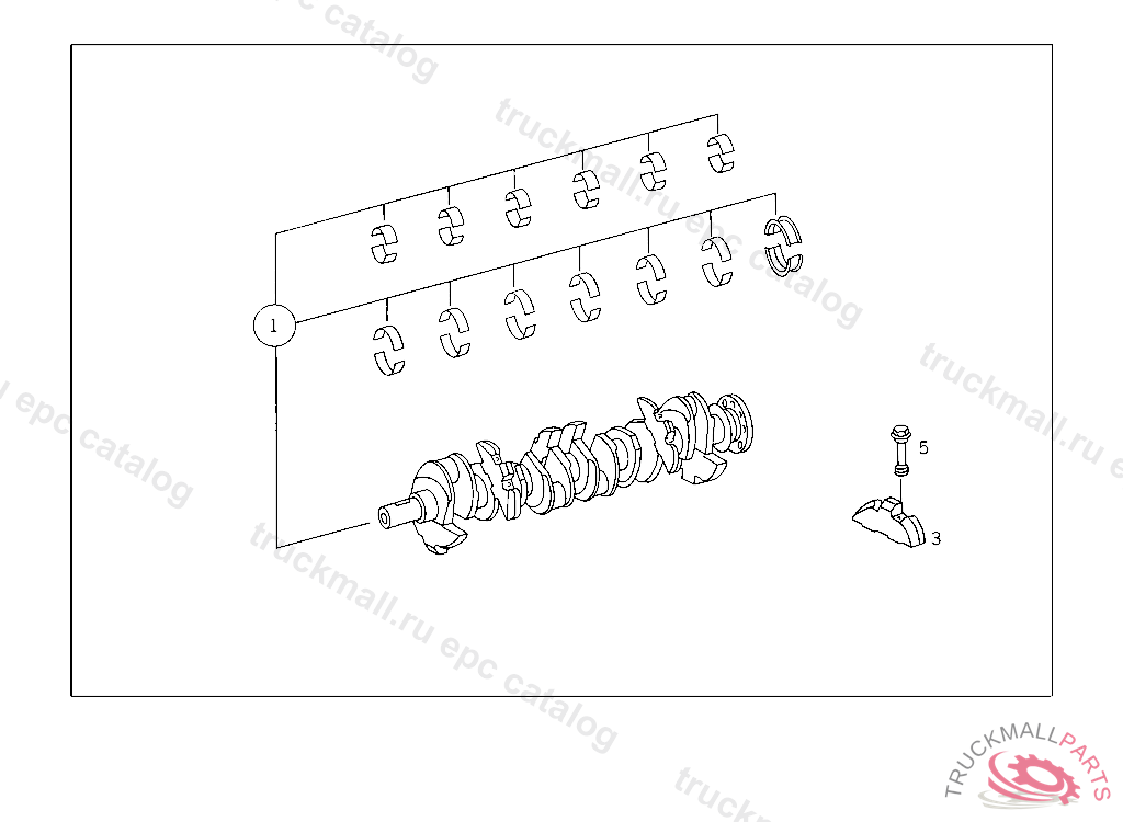 CRANKSHAFT WITH CRANKSHAFT BEARING SHELLS AND CONNECTING ROD BEARING SHELLS