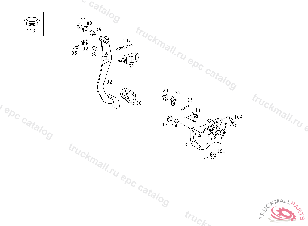 SPRING BRAKE PEDAL ASSEMBLY, WITH PARKING INTERLOCK MECHANISM A 547529 F 698342