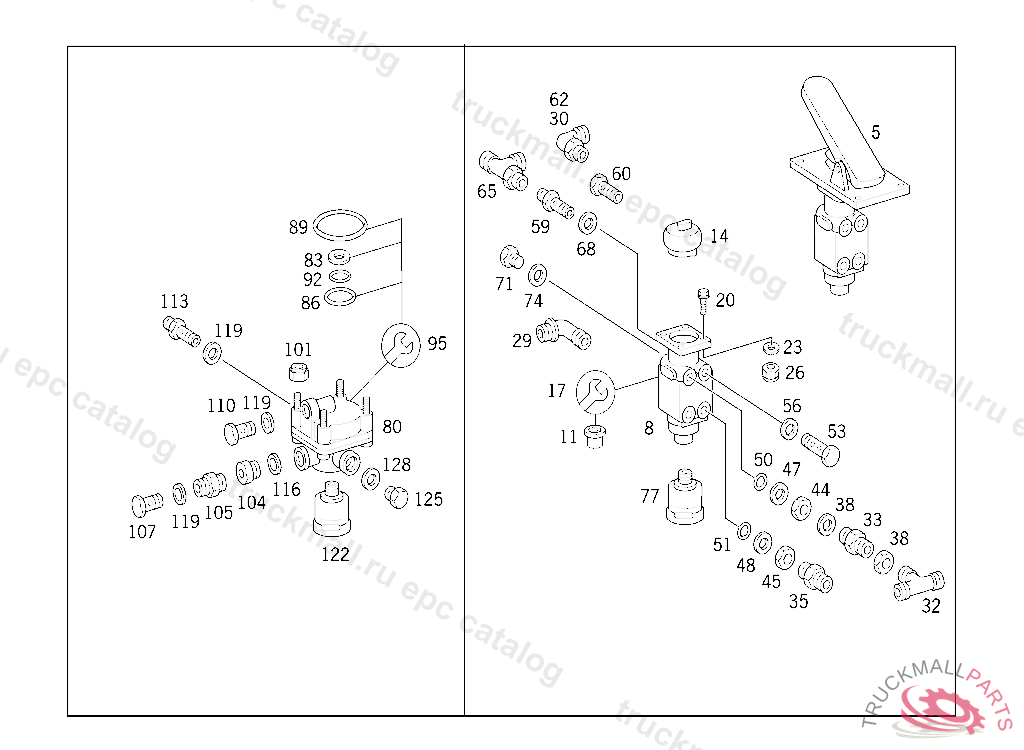 BRAKE VALVEWABCO, FROM IDENT NO. 062128 WITH MERCEDES-BENZ BODY FROM IDENT NO. 060739 LESS MERCEDES-BENZ BODY ALSO INSTALLED ON 059219,059347,059471,059491,059602,059612,059647,059758,059777,059816,059827,059835,059840,059845, 059895,059983,059986,060020,060054,060063,060105,060222,060233,060288,060353,060397,060463. UP TO IDENT NO. 064355 WITH MERCEDES-BENZ BODY UP TO IDENT NO. 064385 LESS MERCEDES-BENZ BODY EXCEPT FOR 063286,063657,063675,063756,064025,064058,064072,064107,064128,064145,064165,064185. PART IS ONLY OR ALSO SUPPLIED AS RECONDITIONED PART