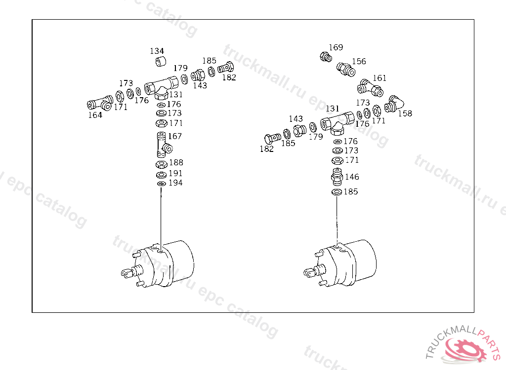 T-FITTING INSIDE AND OUTSIDE AIR RESERVOIRS, FRONT CONNECTION