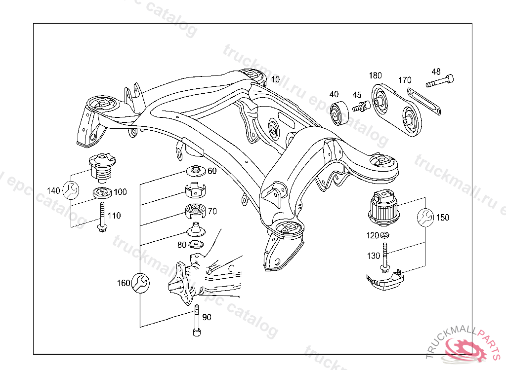 REAR SUBFRAME WITH RUBBER MOUNTING, FIRST EXHAUST STOCK OF OLD PARTS UP TO IDENT NO. A 00059920010731 F 22399520010501 R 05072220011026, Replaced By: A2033504108