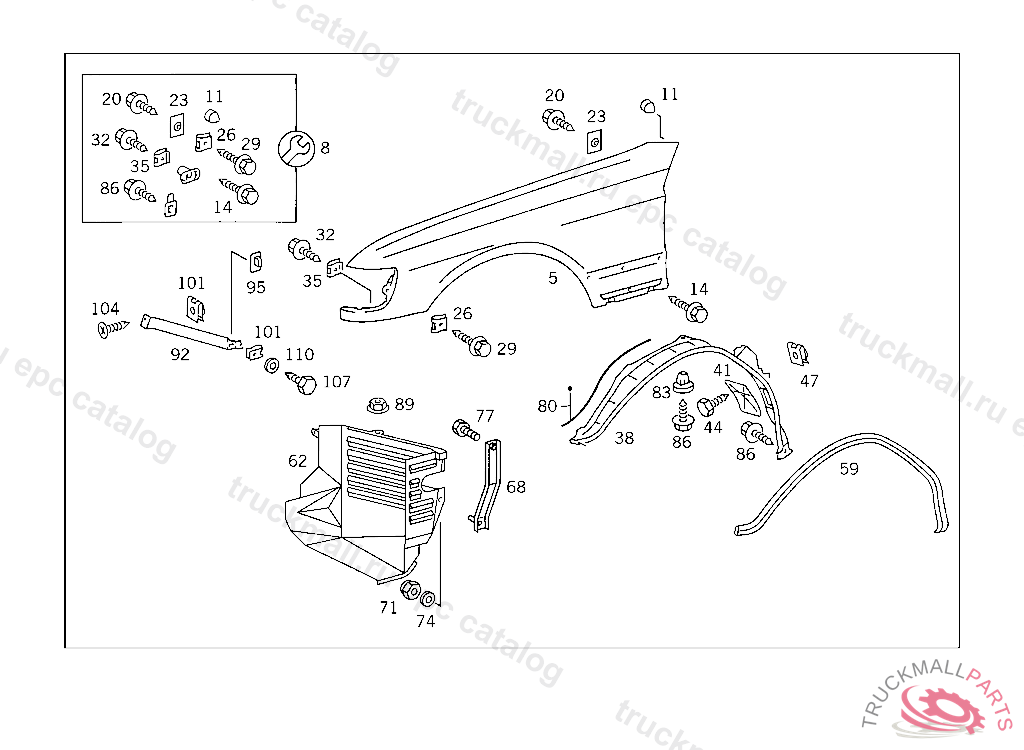 SCREW PARTITION PANEL TO FRONT FENDER, 003 109847 007 098846 086 007461 093 010729 102,103 304111 105 266568 183 019766 190 024811 193 007801 200 082947 280 003503 283 008887