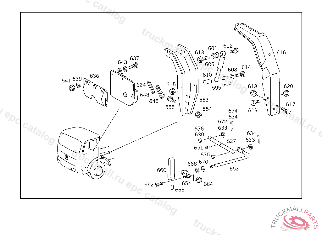 PIN PULL TO FASTENER, 385.019 FOR USE WITH MEDIUM-LENGTH MERCEDES-BENZ CAB,385.068,069 ONLY VEHICLES HAVING NO MECEDES-BENZ CAB