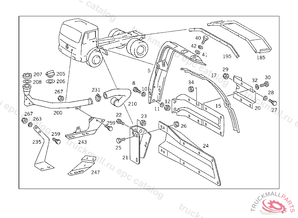 SUPPORT LEFT FENDER, WITH 385.068,069 ON VEHICLES WITH DB-CAB,ONLY ON 385.019 ONLY FOR VEHICLES HAVING NO MERCEDES-BENZ PLATFORM