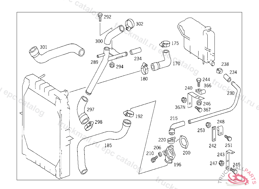 COOLING WATER PIPE FROM EXPANSION TANK TO WATER PUMP, 385.019 NOT FOR USE LESS MERCEDES-BENZ PLATFORM