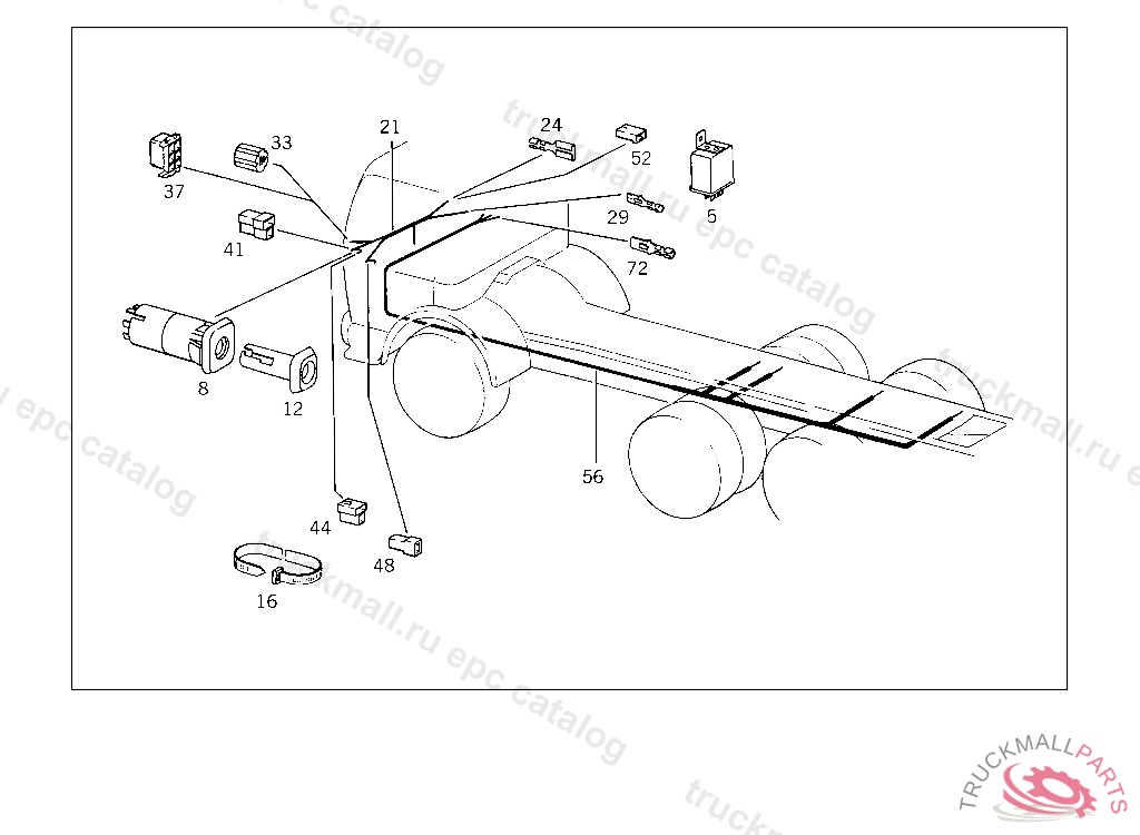 PIN BUSHING HOUSING. PLUG HOUSING FROM CHASSIS/CAB CONNECTION POINT TO TACHOGRAPH