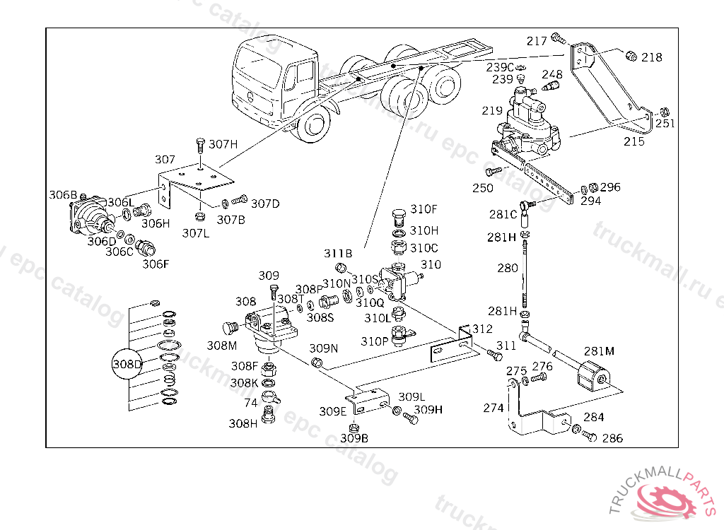 BRACKET OPERATING ROD, FROM CHASSIS 4 358799 AS WELL AS APPLICABLE FROM CHASSIS 4 344455-4 358798 ON VEHICLES WITH TRAILING AXLE FIT TO BE RAISED4 643312
