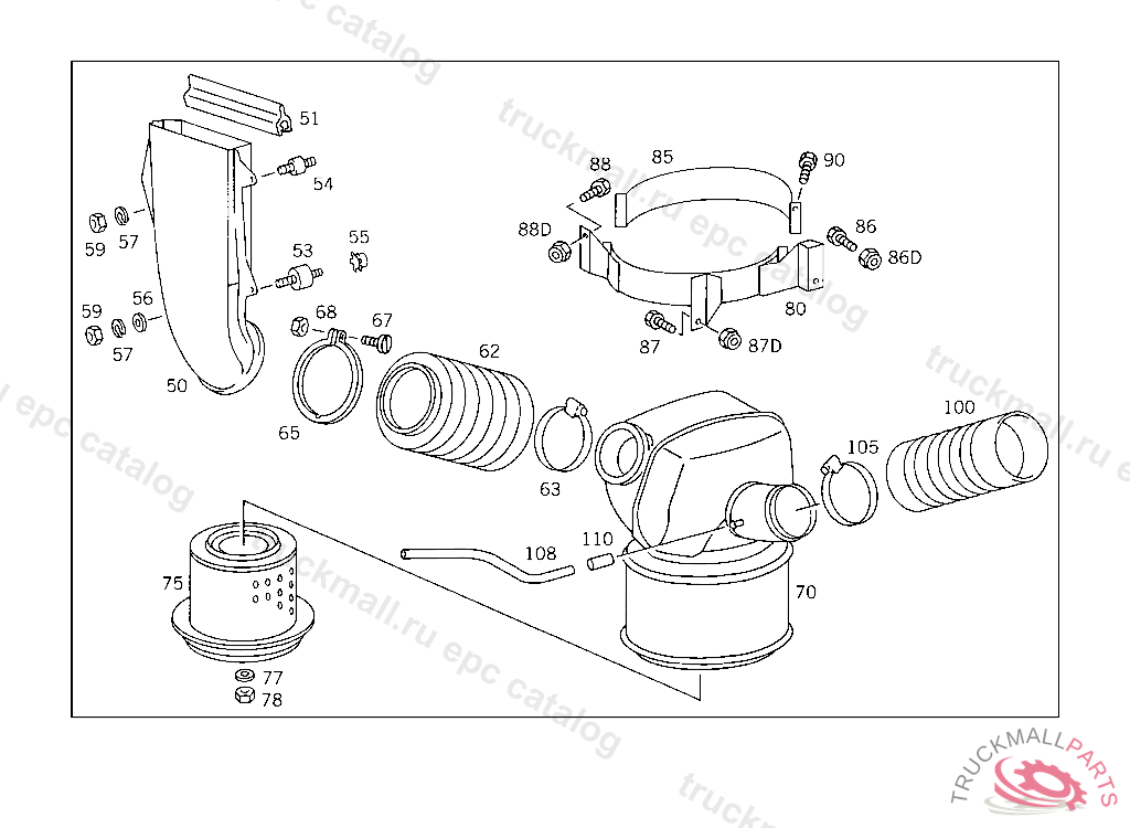 HOSE CLAMP FROM AIR CLEANER TO TRANSVERSE INTAKE PIPE, Replaced By: A0019951910