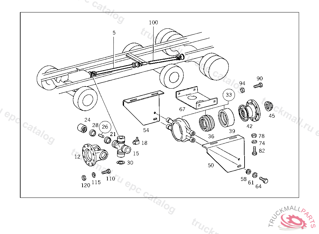 PROTECTIVE CAP FOLLOWER FLANGE, INTERMEDIATE BEARING, BALL BEARING IN RUBBER SEAT