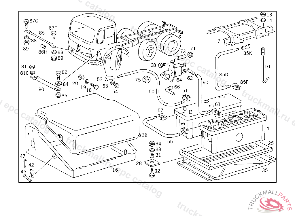 FRAME BATTERY MOUNTING, 10/20 UP TO CHASSIS 4 347 646,50/60 UP TO CHASSIS 4 345 731