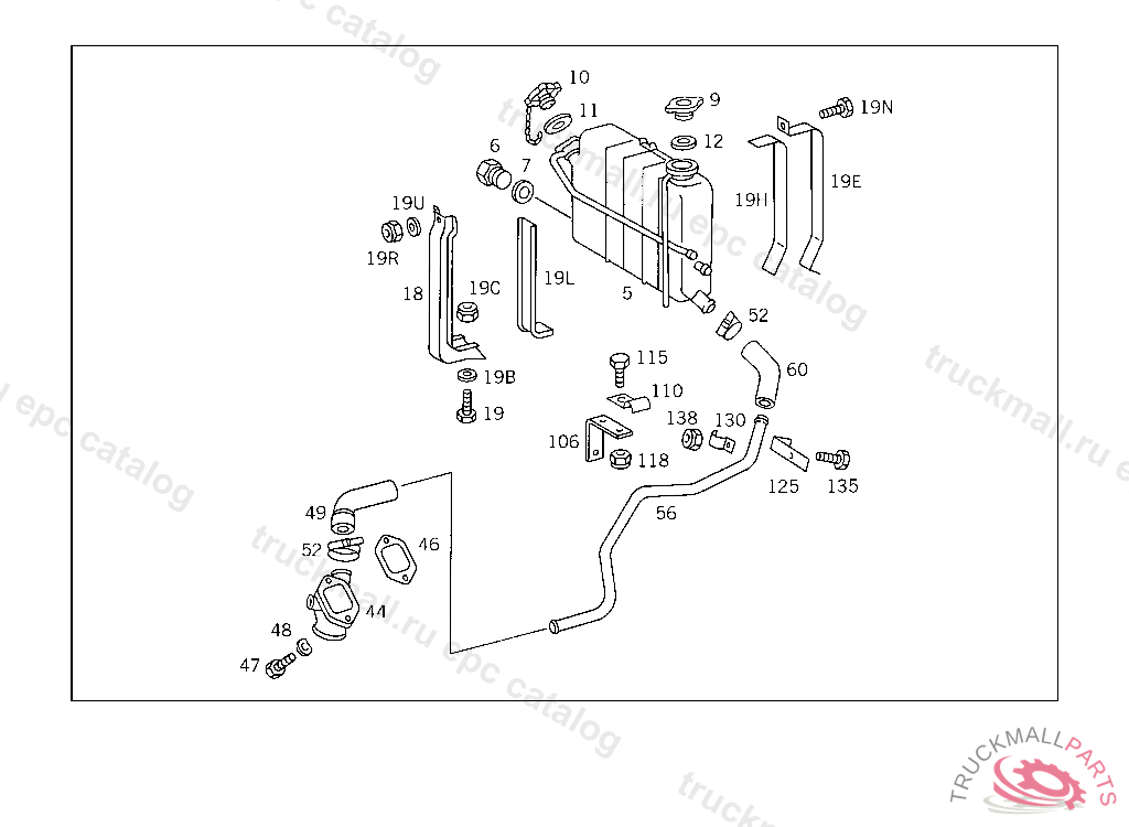 HOSE FROM WATER PUMP TO EXPANSION TANK, 415 5 014668 416 5 000515 417 4 972023 FOR USE WITH SHORT MERCEDES-BENZ CAB