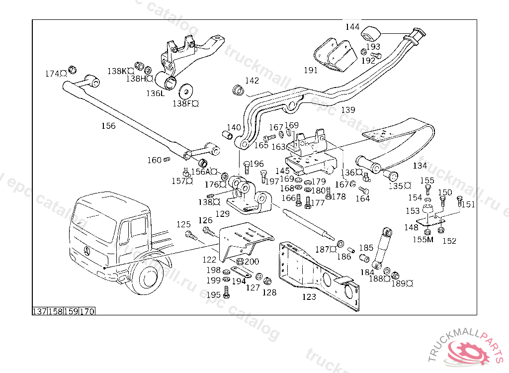 MOUNTING , MODEL 416,417 FOR USE WITH MEDIUM-LENGTH MERCEDES-BENZ CAB FIRST EXHAUST STOCK OF OLD PARTS UP TO IDENT NO. 4 837892, Replaced By: A6208901603