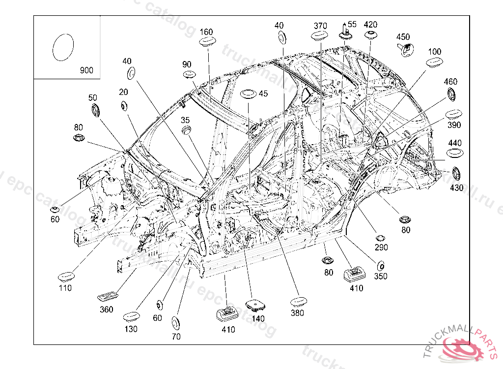 EXPANSION PLUG AT CENTER TUNNEL AT RIGHT