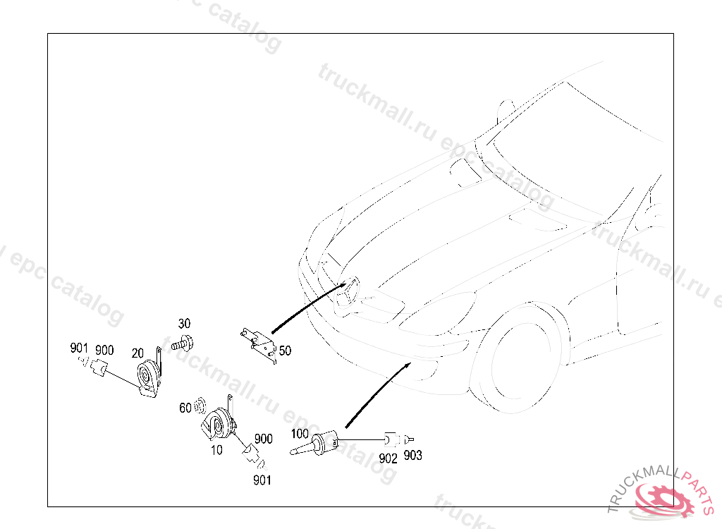 HORN AT FRONT MODULE 420 HZ, F 19475220080331 IMPORTANT: FANFARE HORNS 420 HERTZ/510 HERTZ MUST BE EXCHANGED IN PAIRS
