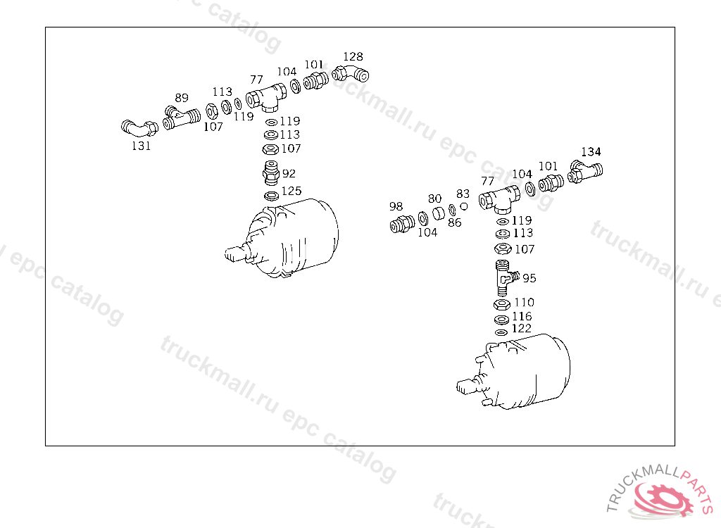 T-FITTING INSIDE AND OUTSIDE AIR RESERVOIRS, FRONT CONNECTION