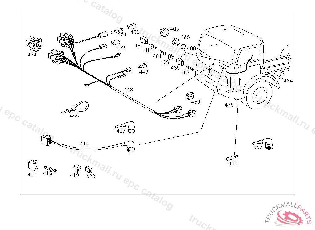 ELECTRIC CABLE FROM CHASSIS/CAB TO FRONT LONGITUDINAL DIFFERENTIAL LOCK CONTROL,5 1802665 220080