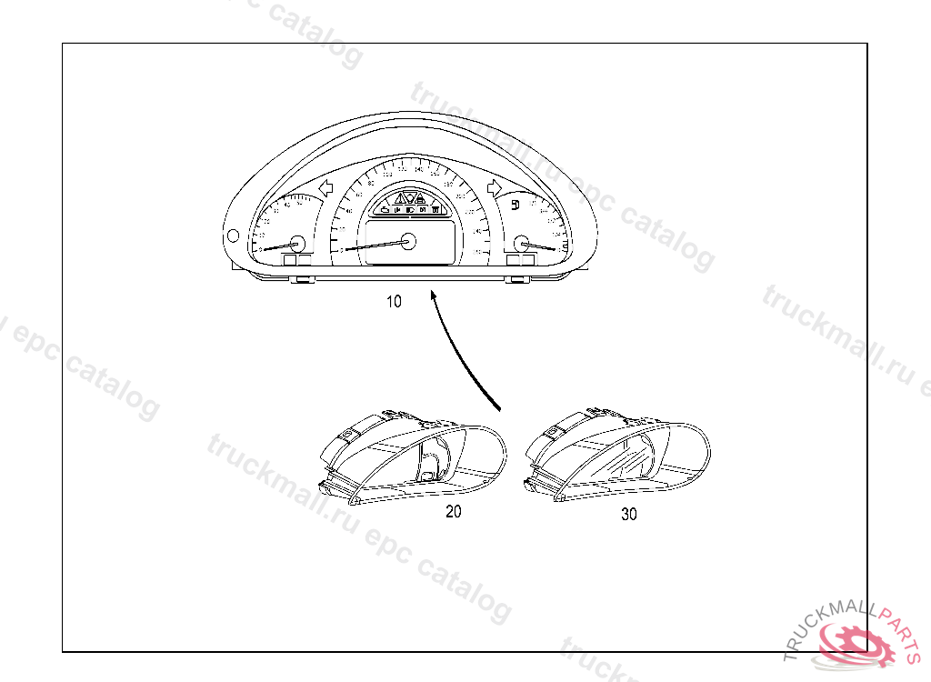 INSTRUMENT CLUSTER READING IN MILES, FIRST EXHAUST STOCK OF OLD PARTS UP TO IDENT NO. A 66602420040430 F 59396620040531 R 15626520040630, Replaced By: A2035401948