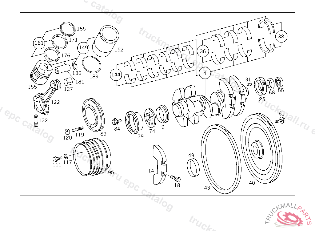 CRANKSHAFT , OLD PART NUMBER TO BE RE-EQUIPPED WITH STEEL COUNTERWEIGHTS 403 031 04 07, Replaced By: A4210302401