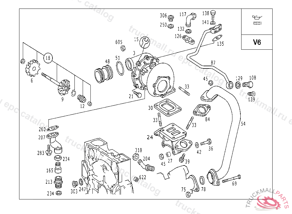 TURBOCHARGER , EXHAUST STOCK OF OLD PARTS UP TO ENGINE 949001, Replaced By: A0060967399